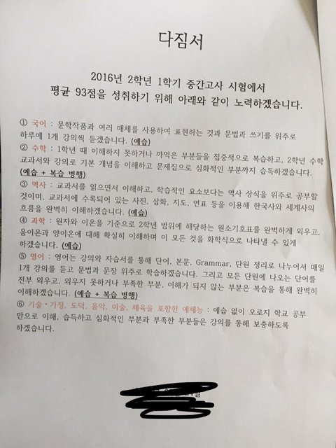 정말피나도록노력해도 80점대아슬아슬하게 올릴지 몰라도 날로어려워지는 공부에 시간은 줄고잇고 난 평균93을 성취해야함. 그리고 평균93점을 못넘는다면 이 아이폰6를 압수하겟다고함. 이게말이나됨? 그럼왜사다준거임? 아직도존ㄴ이해가안감ㅋㅋㅋ 울며 겨자먹기로 내가 쓴 다짐서는