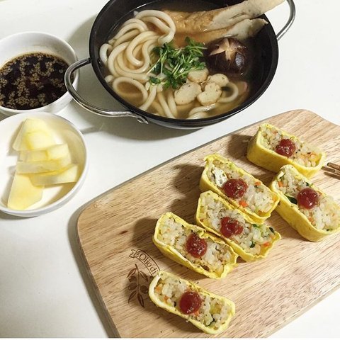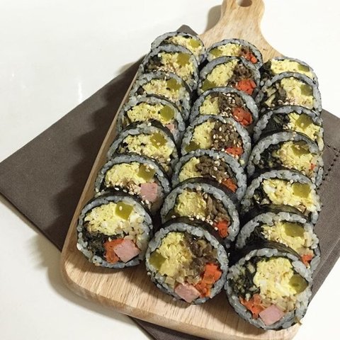 계란말이 하듯이 계란물 붓고 안에 밥을 넣고 돌돌 말아주시면 되요!
