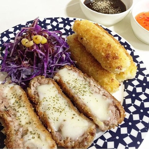 돼지고기 앞다리살이나 등심 얇게 저며서 안에 치즈넣고 돌돌 말아서