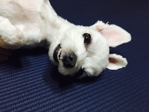 뒷다리를 쭉 펴는걸 좋아해요ㅋㅋ 요가매트에선 역시 요가를!