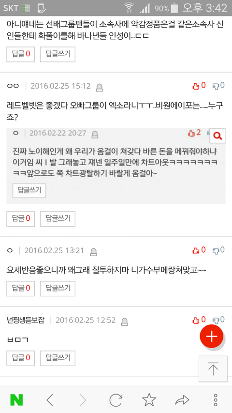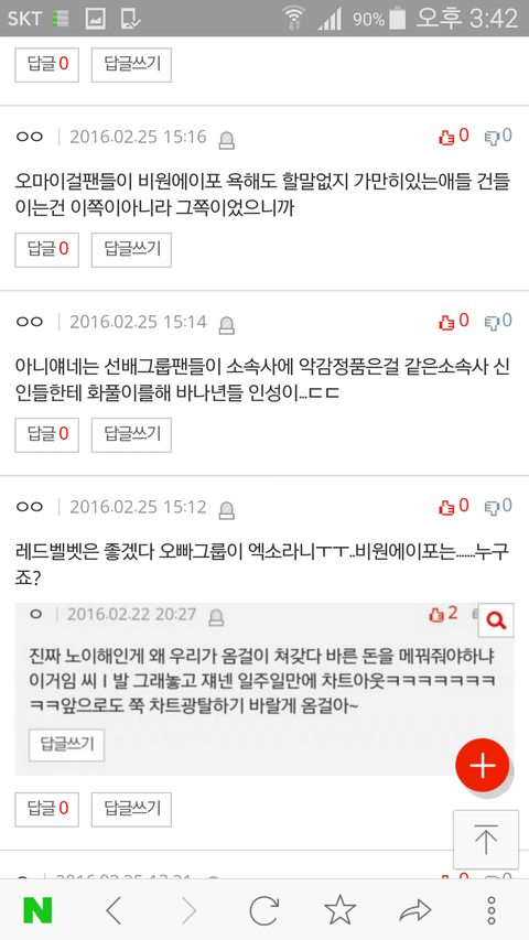 솔직히 저 글 올린 바나도 잘못한거 인정함. 근데 ㅇㅅ랑 빨간비단 얘기는 좀 아니지 않아? 너희가 깔본 그 그룹이 너희 애들 데뷔시키고 좋은곡 내게 했으면 그렇게 말하는거 아니지. 그리고 우리가 언제 옴걸팬년들~ 이런식으로 말한적 있나? 근데 저건 도가 지나친거지 엄연히비포가 선배가순데; 여튼 좀 그렇다