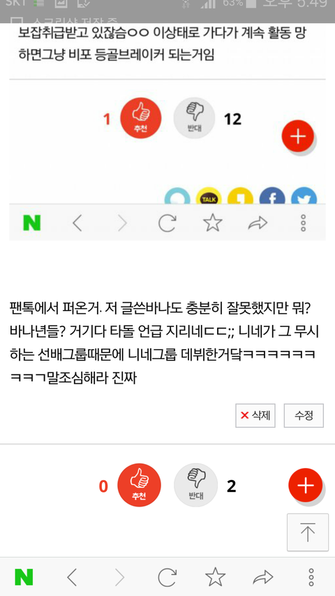 내가 쓴글인데 왜때문에 반대 저리되있음? 아~ 댓글 없는거 보니까 할말은 없는데 짜증나니까 저런거구나~