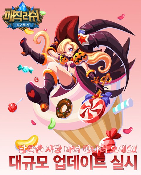 모바일 전략 RPG ‘매직 러쉬:히어로즈(Magic Rush:Heroes, 이하 매직러쉬)’에 신규 영웅과 콘텐츠 최적화 업데이트가 진행됐다. 먼저 새롭게 추가되는 사탕마녀는 후방에서 전투하는 보조형 캐릭터다. 하늘에서 사탕 폭탄을 떨어뜨려 적군에게 피해를 입히고, 사탕으로 아군 주변을 공격하며, 쓴맛 사탕을 시전하는 등 달콤한 사탕을 활용한 공격이 특징이다.