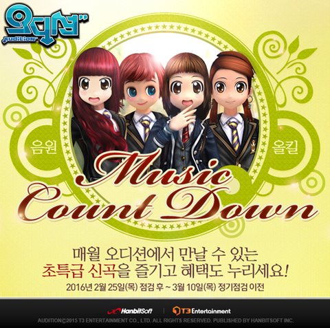 '오디션'에 새롭게 반영된 최신 음원 두 곡과 이벤트 관련 더 자세한 내용은 공식 홈페이지(http://audition.hanbiton.com)에서 확인할 수 있다.