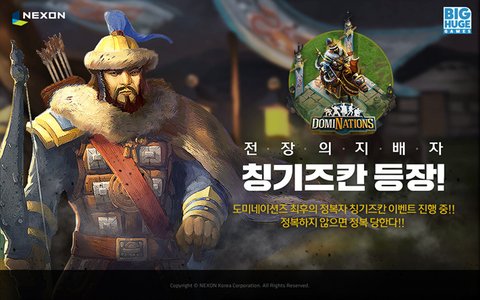 모바일 전략 게임 ‘도미네이션즈(DomiNations)’에 신규 이벤트 영웅 칭기즈칸이 추가됐다. 칭기즈칸은 활을 이용해 출중한 공격력을 지닌 원거리 기병으로, 한정 기간 동안 진행하는 게임 내 이벤트 시스템을 통해 획득할 수 있다.