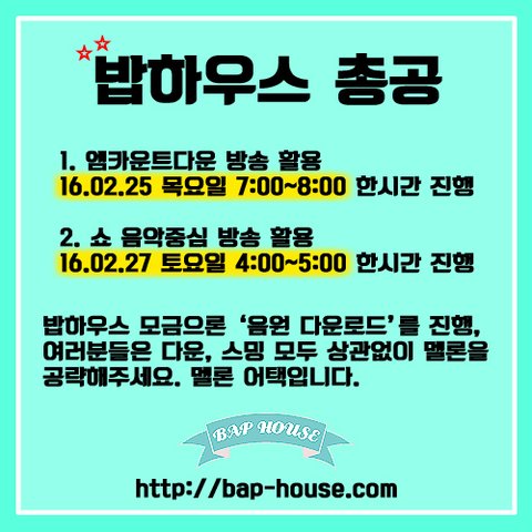 7시~8시 멜론 음원/엠카끝나고 네이버실검 bap총공