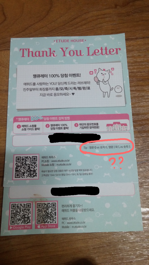 에뛰드에서 온라인으로 주문하면 이런게 와 땡큐레터라고 이번에 시킨거에 예전이랑 다른 문구가 적혀잇어서 위에께 최근꺼 밑에꺼 예전거