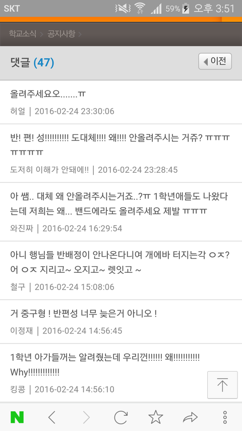 참고로 학교홈페이지 신입생 오티안내문 댓글임