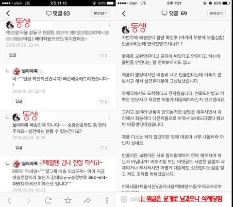 댓글 관련 내용 캡쳐분 입니다.