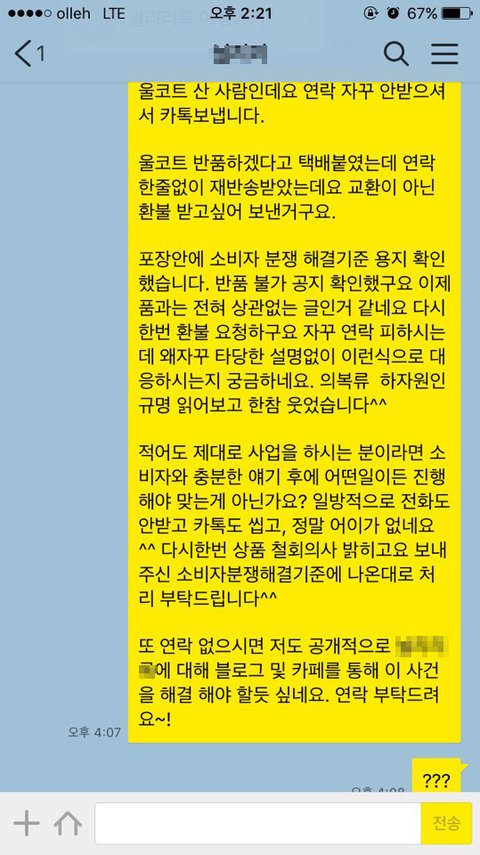 해당 업체에서 대화자체를 거부해버리니, 정말 너무 화가 나네요 ㅠㅠ