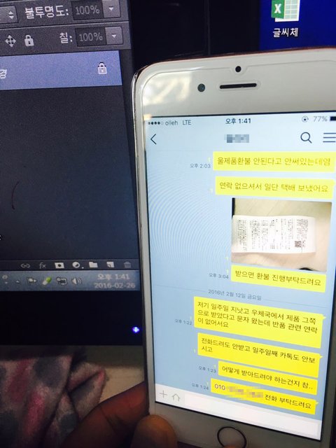 - 2월 5일 금요일 제품을 수령하였으나 제품이 불량이며 제품사진과 상이하였고 단순변심이기도 하여 사업자의 카톡으로 배송비를 지불하여 반품 하고 싶다는 의사를 밝혔음.