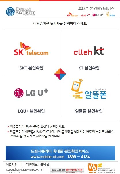 그 다음 본인인증을 위해서 휴대폰 인증이 필요합니다.