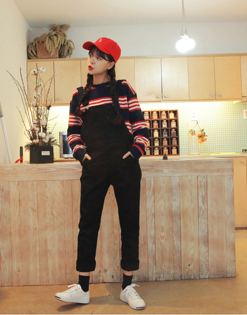 이런건데 검은색에다가 통이 너무 크지도 않고 너무 좁지도 않은 딱 일자멜빵바지인데