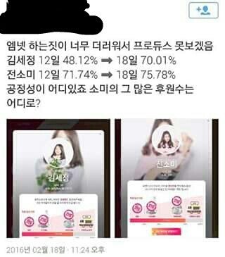 후원하기는 알다시피 정말. 압도적으로 전소미가 1위였어요. 2등연습생이 30? 40퍼센트를 달리고 있었을때 전소미양은 70퍼센트를 달리고 있었으니깐요. 근데 며칠 전에 2등 연습생은 일주일? 이주일 만에 30퍼센트가 확 하고 오르고 그에반해 압도적이였던 전소미양은 5퍼센트가 올랐습니다. 그 뿐만 아니라 그 전에 전소미양이 50퍼센트 대를 달리고 있을때 다른 연습생들은 모두 퍼센트가 오른반면 전소미양만 퍼센트가 떨어진적이 있죠. 30퍼센트를 투표해주시던 팬들이 한번에 없어졌나요? 아니면 후원 취소하기 버튼이 있나요? 이렇게 공개적인 조회수, 후원하기도 조작하는 판국에 투표수를 공개 해 주지 않는 비공개 적인 투표를 조작했다는것을 저희는 의심할수밖에 없습니다.