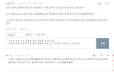 씨.팍 지가 티를 그지같이쳐내놓고 이거어장이죠~? 에라이 개가튼년아 걍 평생혼자살아씨.팍