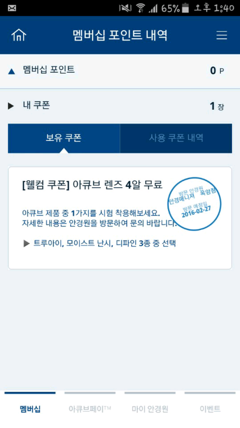 '마이 아큐브' 이 앱 깔면 쿠폰이 하나 들어오는데