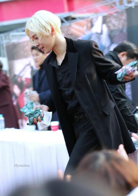 오늘 위너의 신촌팬싸에서 팬들이 춥다니까 본인이 가지고 있던 핫팩을 하나씩 던져주기 시작하더니