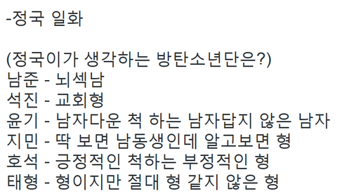 정국이가 생각하는 방탄소년단ㅋㅋㅋㅋ