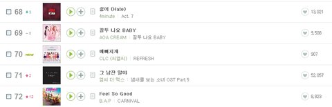 그래도 70위 진입이면 나쁘지않은데..?올레뮤직에서는 28위진입이였어