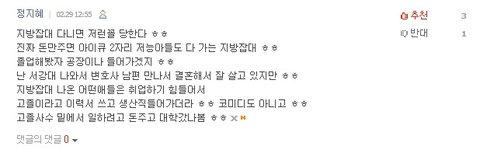 지방잡대가면.. 아이들 수준 상상초월할걸 진짜 수준개떨어짐....말투부터다 고딩양아치티가 팍팍 나고 대가리 비어서.