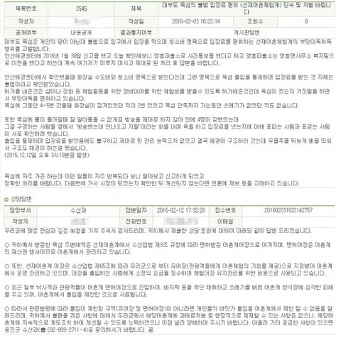그럼에도 불구하고 옹진군청은 이런 불법적인 입장료 편취를 알면서도 행정적 제제를 하지 않고 계도하겠다는 성의없는 답변을 보냈습니다.(맨 아래 참조)