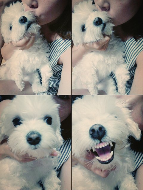 그리고 똘이가 제일 싫어하는 뽀뽀를 하면 건치를 자랑합니다 ㅋㅋㅋ