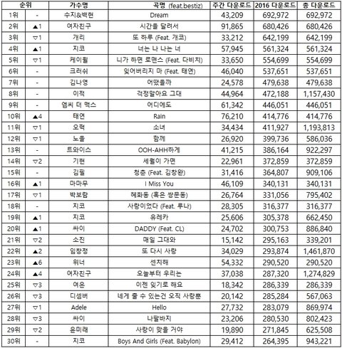 2016음원다운로드TOP30