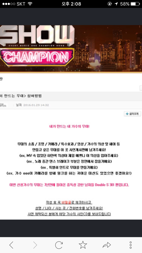 이거뭐야??무대컨셉같은걸 팬이만든다는건가??오늘 사녹에서 아무런 이벤트같은거 안햇는데..!
