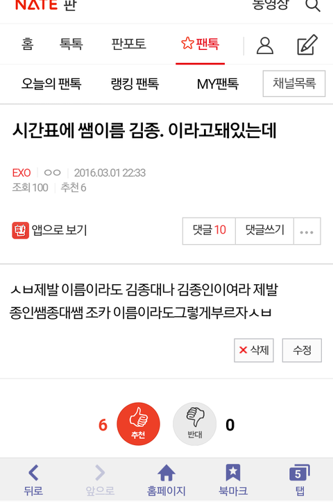 야이개년아 그딴식으로 팬질하니까 부메랑 처맞지