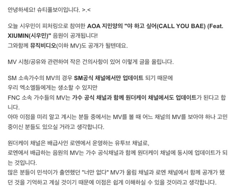 2. 야하고싶어(Call you Bae) MV 스트리밍 관련 사항 * (참고)