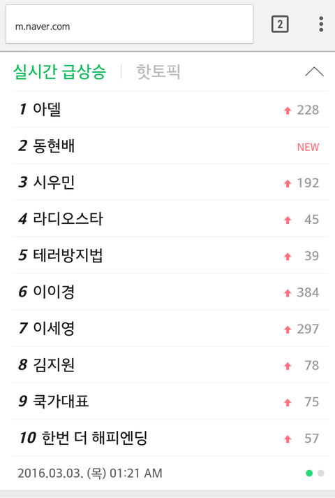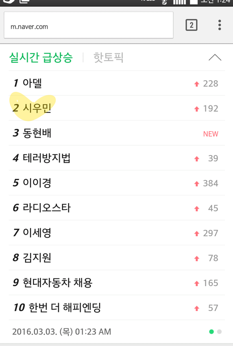 시우민 160303 네이버 실검 2위