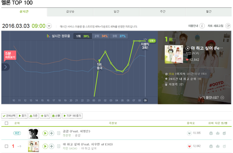 9시 차트도 지붕킥!