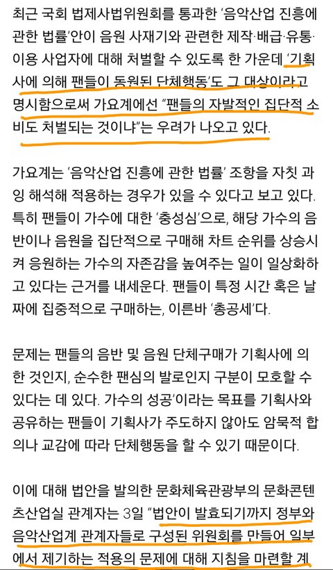 국회 통과된건 다들 알지? 근데 문제는 앨범 공동 구매도 음원 사재기 처벌 대상으로 할지 논의 중이래. 해외 공동 구매의 경우는 어떻게 하려고 그러는지