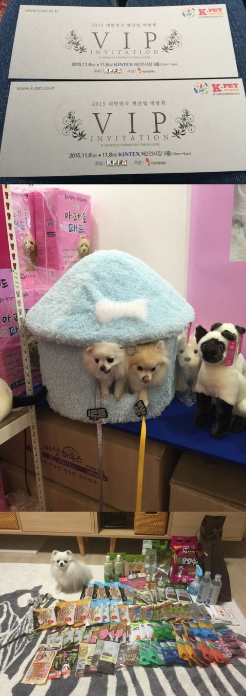 그리고 k-pet 박람회도 다녀왔어요 마약쿠션 로리로하 유모차 사진에있는 버섯집 간식등등.. 많은 걸 구입하고 왔습니다 사진에보이는 간식들 보이시죠~? 저건 박람회가면 공짜로 SAMPLE 얻어온겁니다 안가보신분들 한번 방문해서 득템하세요!