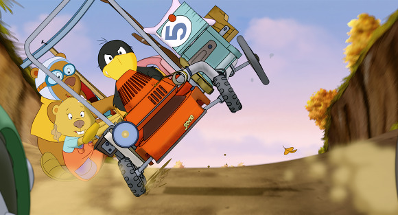 귀여운 동물 친구들이 벌이는 좌충우돌 레이싱 대회를 그려낸 <붕붕 달려라 깜이>는