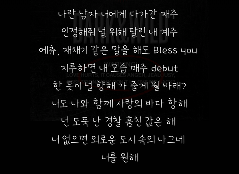 가사가 왜케 설렘...? 모든 가사가 다 설레긴 하는데 진짜 랩라 속삭이듯 랩하는 거 개발린다 아니에요...? 융기 낮누 호비 파트 다 개조아...특히 호비 파트 존좋....인정해줘 널 위해 달린 내 계주라뇨... 오마이갓...오우...