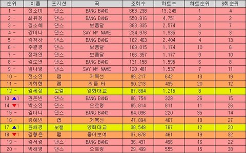 프로듀스101 포지션평가 직캠순위