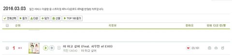 시우민 ㅈ1민 야 하고싶어 멜론 일간차트 1위