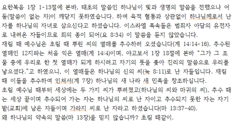 하나님의 씨로 난 자는 하나님의 아들이고 마귀의 씨로 난 자는 마귀의 아들입니다(마 13:37-40).