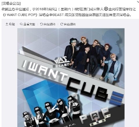 비스트 장현승이 개인사정으로 참여할 수 없게 됐다.