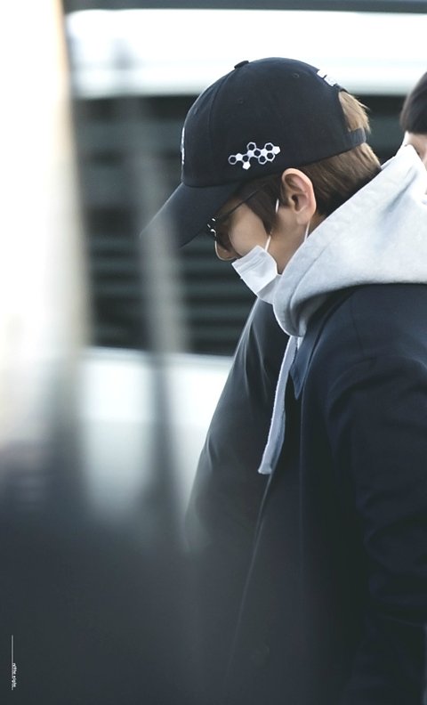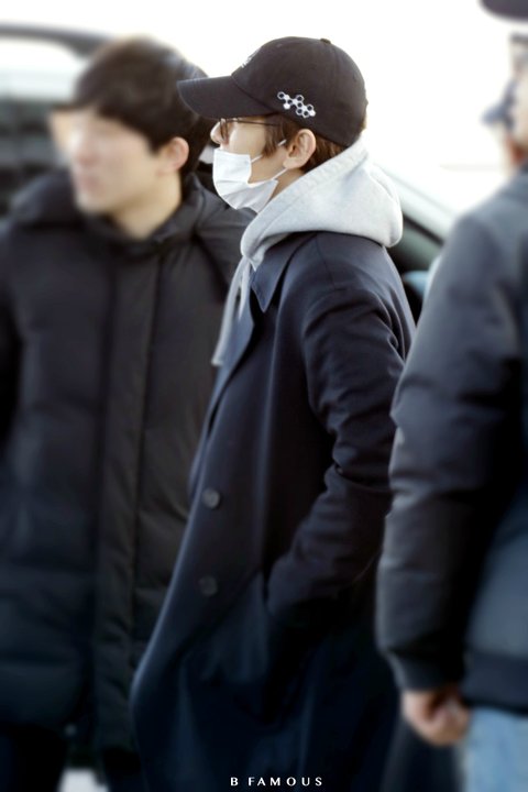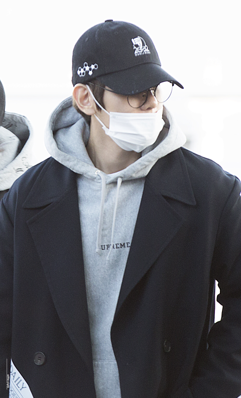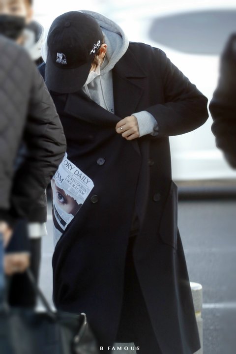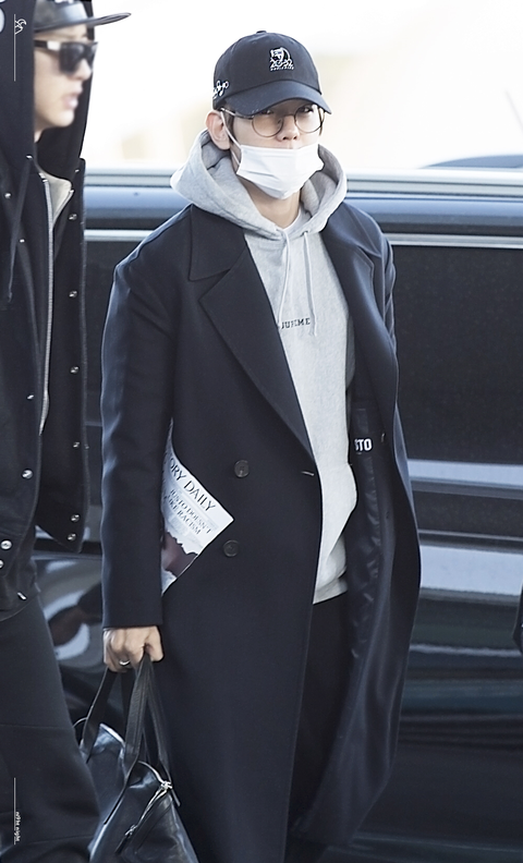 코트 프린트 확인하는 백현이