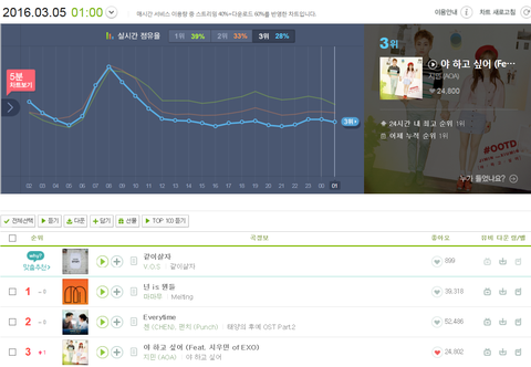 좋은 노래니까 롱런해서 오래 오래 차트에 있었으면 좋겠다, 롱런이 더 중요하다고 생각하기는 하는데... 그래도 3위 안에 있으니까 좋네 웅녀들도 그렇지? ㅋㅋㅋㅋ