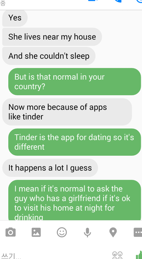 "Tinder(데이트/만남 어플) 같은 어플때문에 요즘에는 점점 더 그런거 같아"틴더....? 더 어이가 없었어요. 아니 틴더는 만남이나 잠자리라는 목적이 있는건데 이 상황이랑은 너무 달라라고 하고 다시 물어보니까 그제서야 하는말이