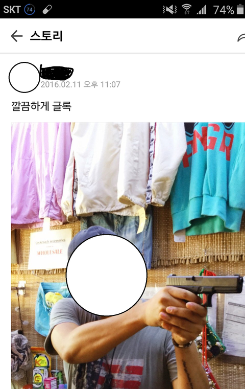 S가 한 SNS에서 총기를 들고 올린 사진입니다.