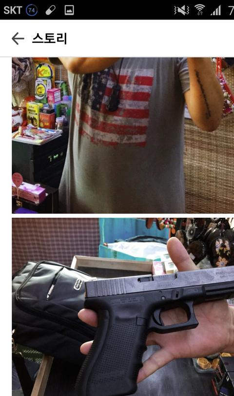 보십시오 지인들이 진짜 총이냐는 묻는말에 현지경찰총이냐는 대답을....