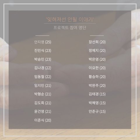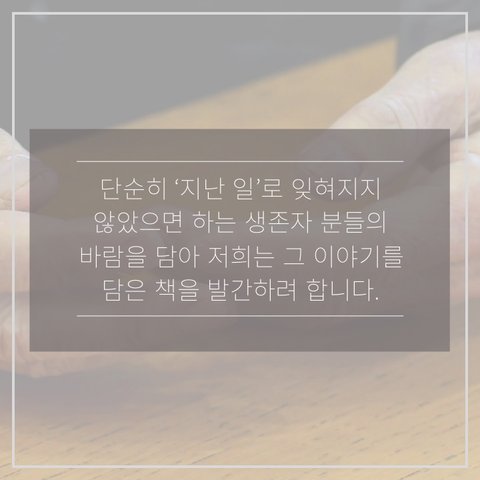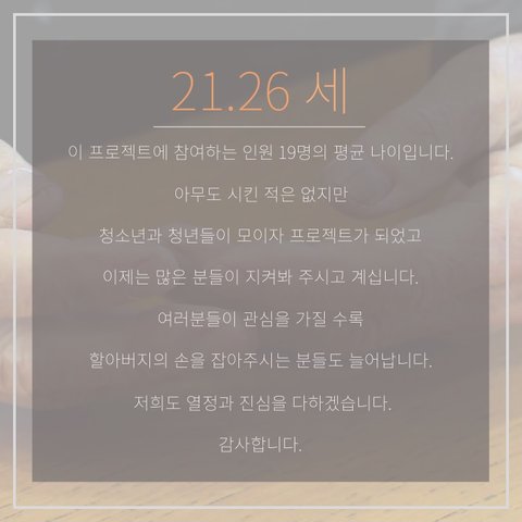 우리의 할아버지와 할머님들의 이야기에 이제 조금만 관심을 가져주셨으면 좋겠습니다.