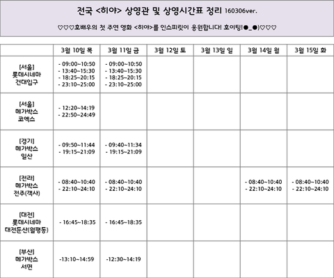 히야 상영시간표 정리