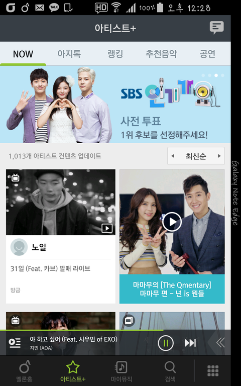 멜론 어플 밑부분 '아티스트+' 여기 눌러서 위에 배너 옆으로 쭉쭉 밀면 인가사전투표 배너 떠!!!
