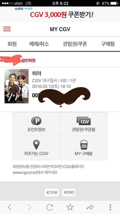 cgv 회원 로그인 휴면이라서