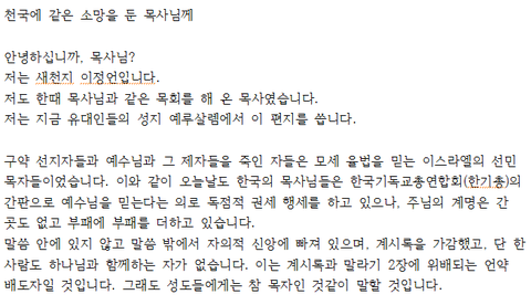 천국에 같은 소망을 둔 목사님께